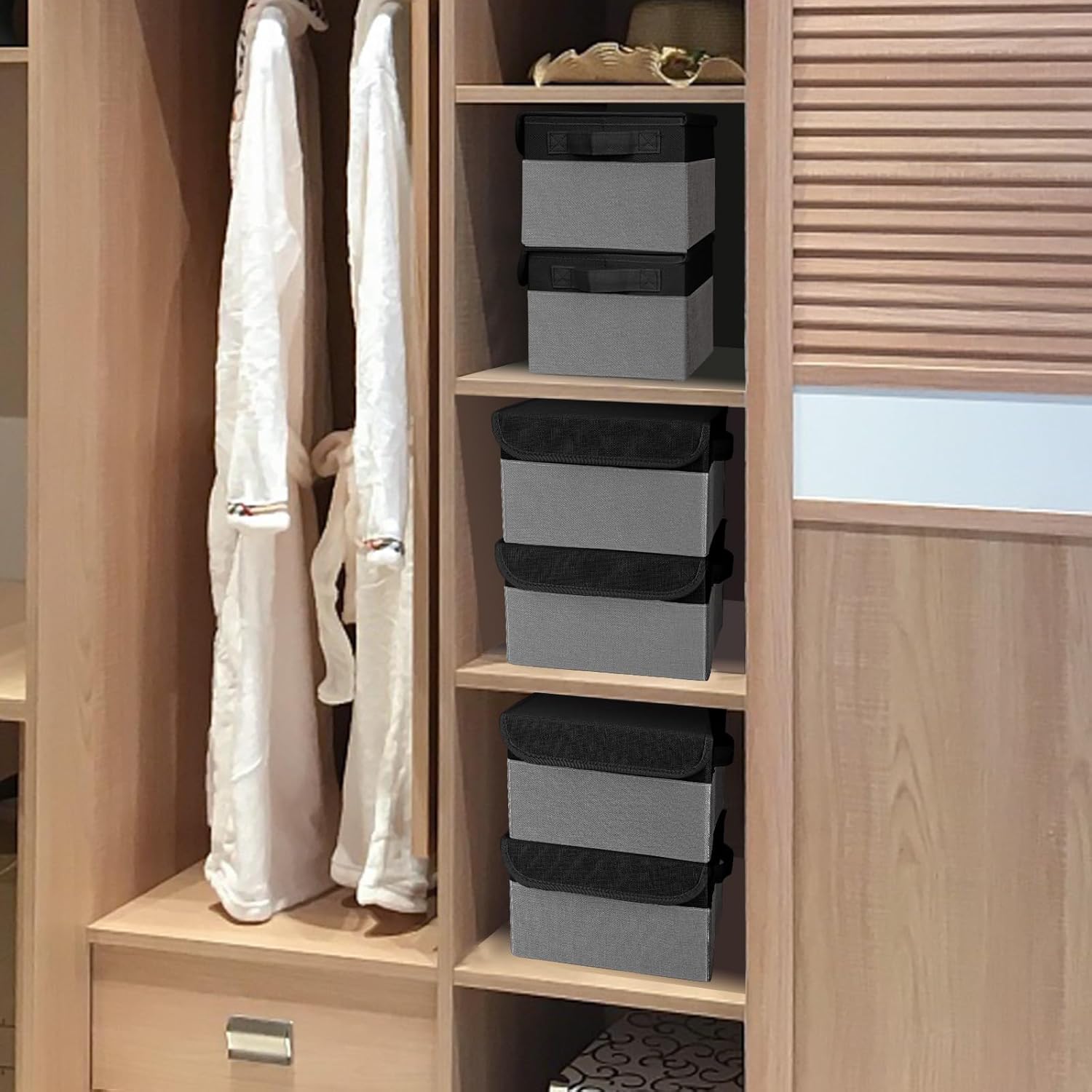 - 【Small Storage Box with Lid】 - The size of this storage cube with lid is 10" (L) x 8" (W) x 6" (H). Package contains: 6 x storage boxes. The clothes storage bins with Flip-top lids and strong velcro are easy to clean。 Dusting the basket with a soft dry cloth is recommended.