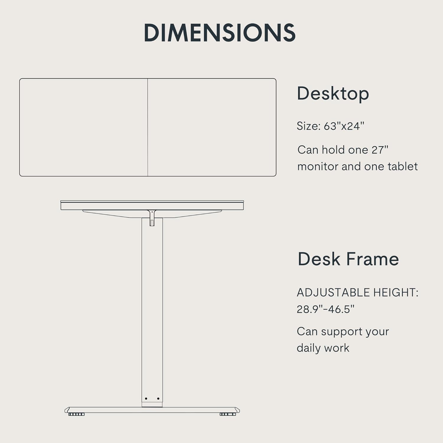 - SPACIOUS WORK AREA: The 63" x 24" desktop offers plenty of room for multiple monitors, laptops, and office essentials, keeping everything within reach and at eye level to reduce neck strain.