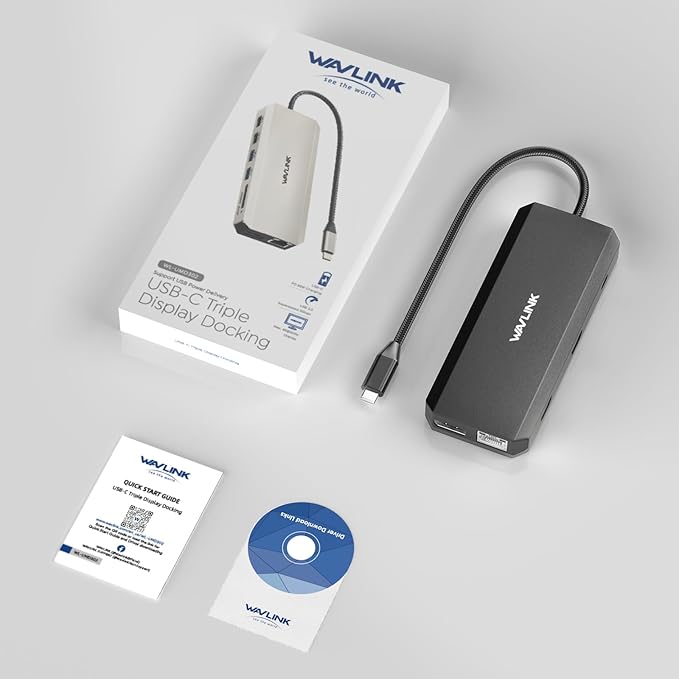 WAVLINK USB C Docking Station - Dual Monitor, Triple Display, 2 HDMI, DisplayPort, PD Charging, Ethernet, 5 USB, SD/TF Card Reader, Audio for MacBook, Dell, HP, Lenovo, Surface - Black