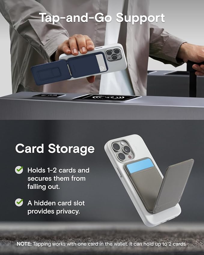 - Foldaway On-the-Go Companion: At 0.35" thick and weighing 3.4oz, it fits in your palm and goes in your pocket without adding bulk so you can access all its features on the go. And you can use this magsafe wallet for the iPhone's Standby mode on any surface. Available in two stylish colors including Taupe and Navy Blue to go with everything.