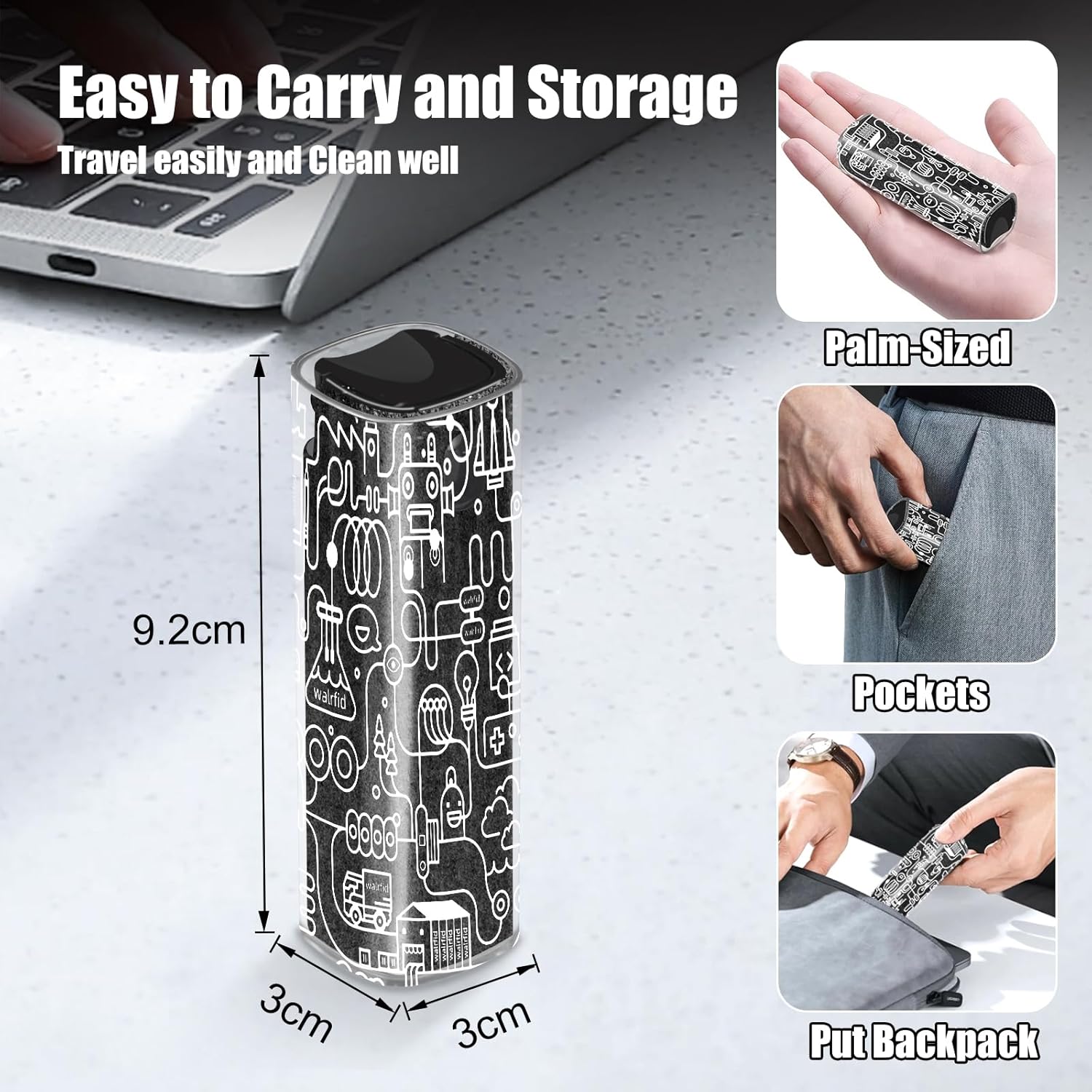 - Easy to Spot and Carry: Compared to a plain or less noticeable monitor cleaner, the unique graffiti design makes the phone cleaner easy to spot among other items, reducing the chance of losing it. The laptop screen cleaner is a little larger than lipstick, making it an easy-to-carry size. Must-have computers, tablets, and laptop accessories for Men or Women.
