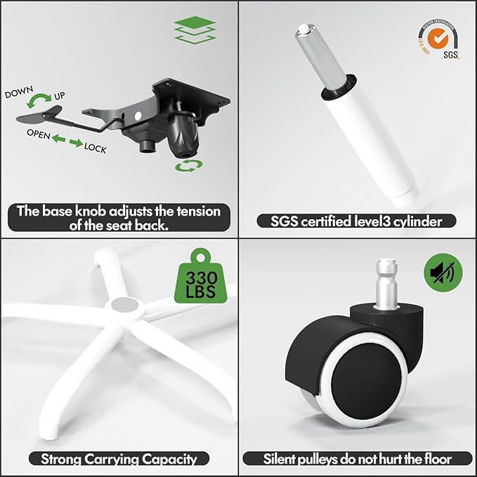 - 330 lbs Load Capacity and Durable Construction: This chair is made of high-quality materials and has a sturdy 5-point bottom metal base to ensure strength and stability. Whether you're working or playing, enjoy a chair designed to meet your needs