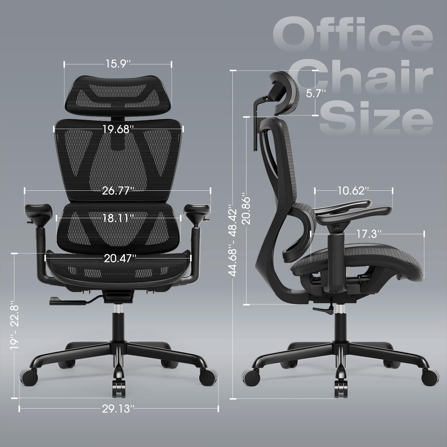 - Multi-Function Design: The ergonomic computer desk chair features an adjustable mesh headrest and a tiltable high back. Providing ample support from the neck, shoulder, back to waist, allowing the entire desk chair to fully fit people of different body types.