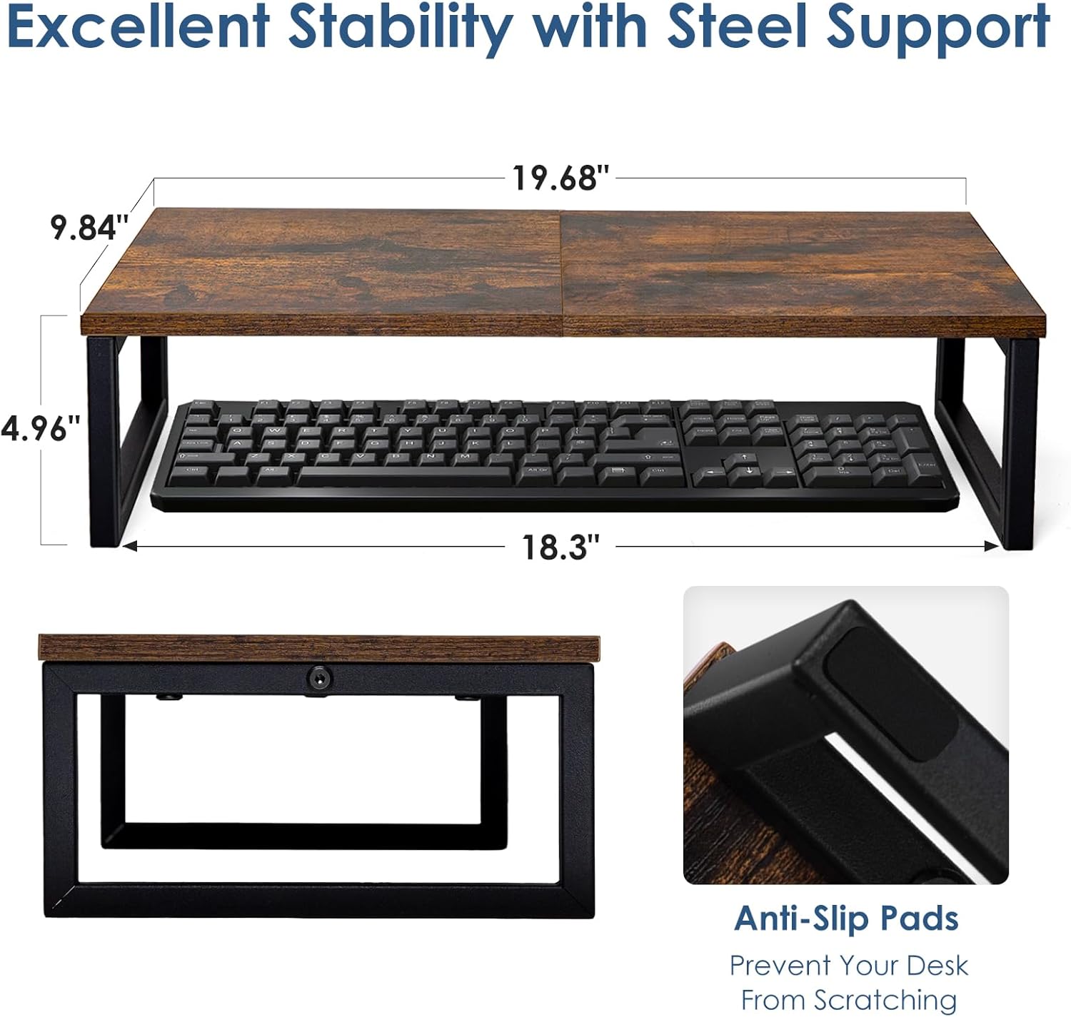 ARCOBIS 20 Inch Monitor Riser, Wood & Metal Computer Monitor Stand Riser for Desk, Rustic Brown