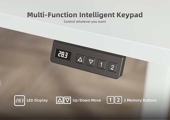- Height Adjustment: The adjustable desk is equipped with an advanced electric lift system. The height adjustment range is from 28.3 inches to 46.5 inches, and different heights can be preset. The powerful motor ensures a smooth and low noise lifting process, quickly adjusting to your comfortable height.