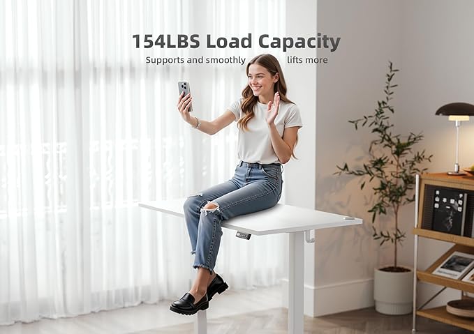 Seang Standing Desk with Adjustable Height, 63x24 Inch Electric Stand Up Desk for Home Office, Studio, Computer Workstation, White Top