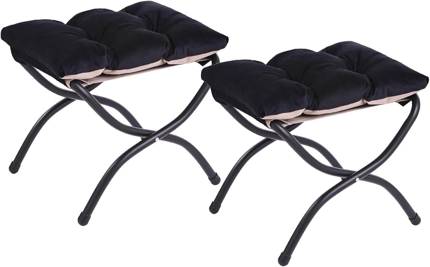 LITA 2 Pcs Folding Upholstered Footrest Stool, Modern Small Portable Accent Ottoman with Detachable Thick Cotton Cushion, Padded Sofa Stool with Metal Frame, Living Room & Bedroom,Velvet Black