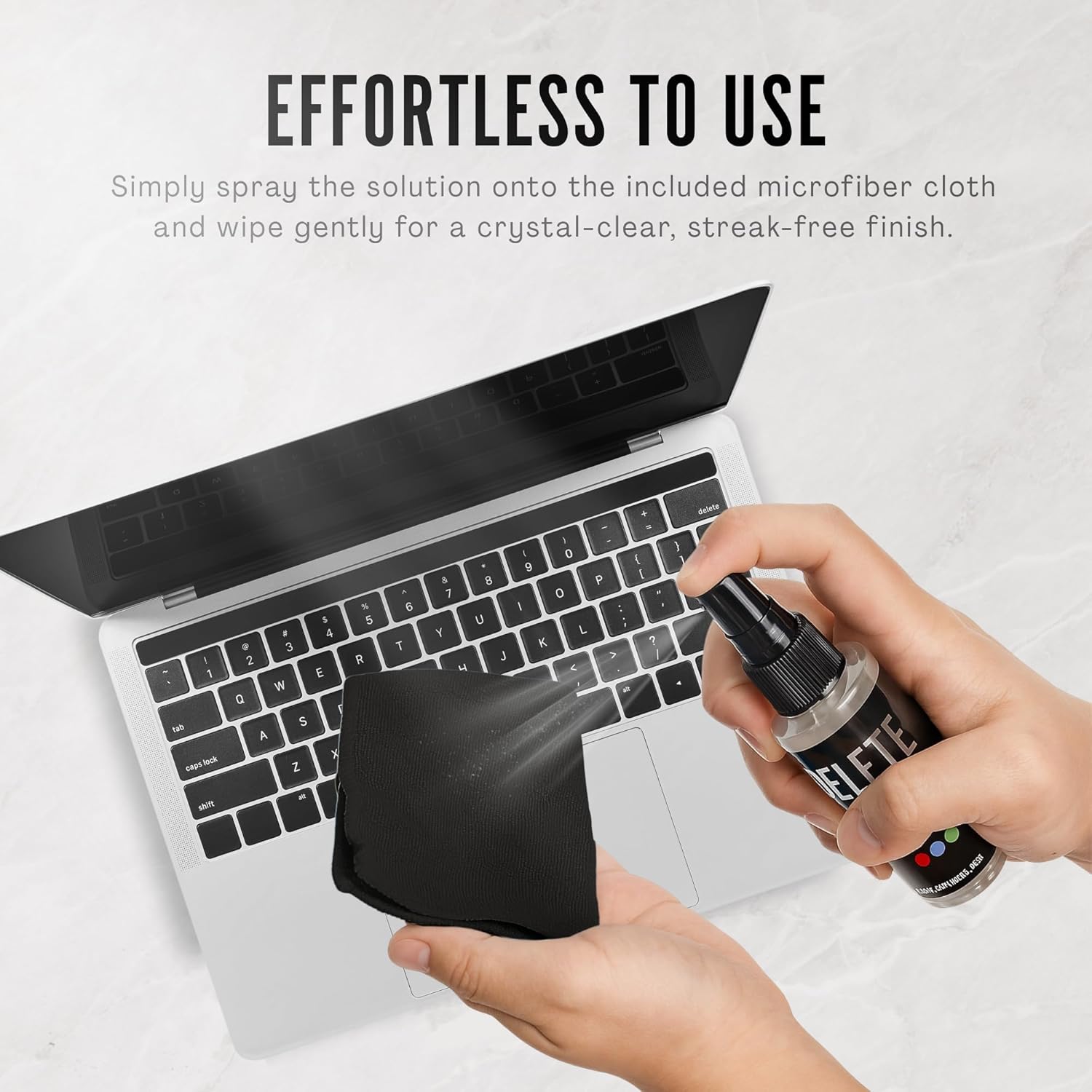 - Effortless Application: Cleaning your device screen is simple, simply spray the cleaner onto the provided 12" x 12" microfiber cloth and wipe. The user-friendly design makes it easy to refresh your devices at home, in the office, or while traveling