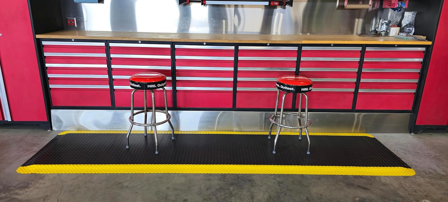 Rhino Mats, American Classic Diamond Anti-Fatigue Mats, Industrial Ergonomic Comfort Standing Mat for Work, Home, Garage, Office, Kitchen or Anywhere (Black/Yellow 9/16" Thick, 4 FT. x 15 FT.)