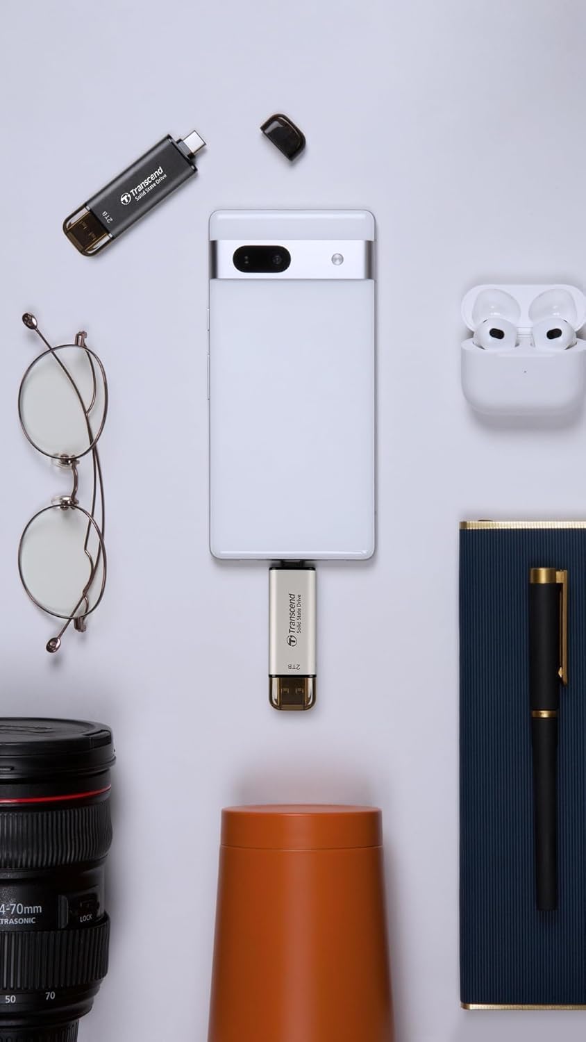 Transcend 128GB External SSD, Up to 1,050MB/s, Dual USB Flash Drive for iPhone&iPad&Mac, Windows&Android, Tablet&PC, Smart TV, USB 3.2 Gen 2 Thumb Drive Photo Stick, 2-in-1 Type C &Type A Memory Stick