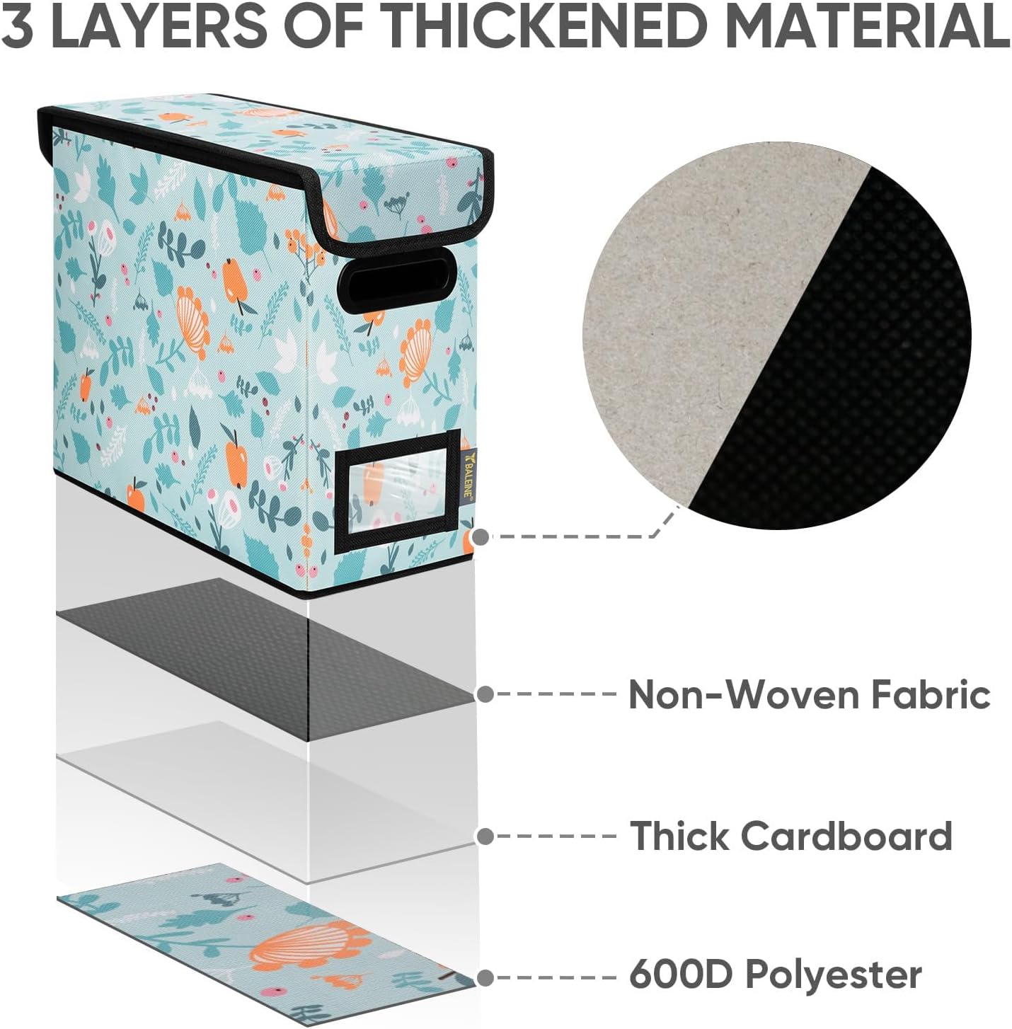 - [DURABLE MATERIAL] The outer layer of our filing box is crafted from high-quality polyester fabric and reinforced with thick cardboard in the middle. This construction ensures that the box maintains its shape and provides better bearing capacity for important documents and files. Its textured appearance can also serve as a stylish decorative element in any office or home