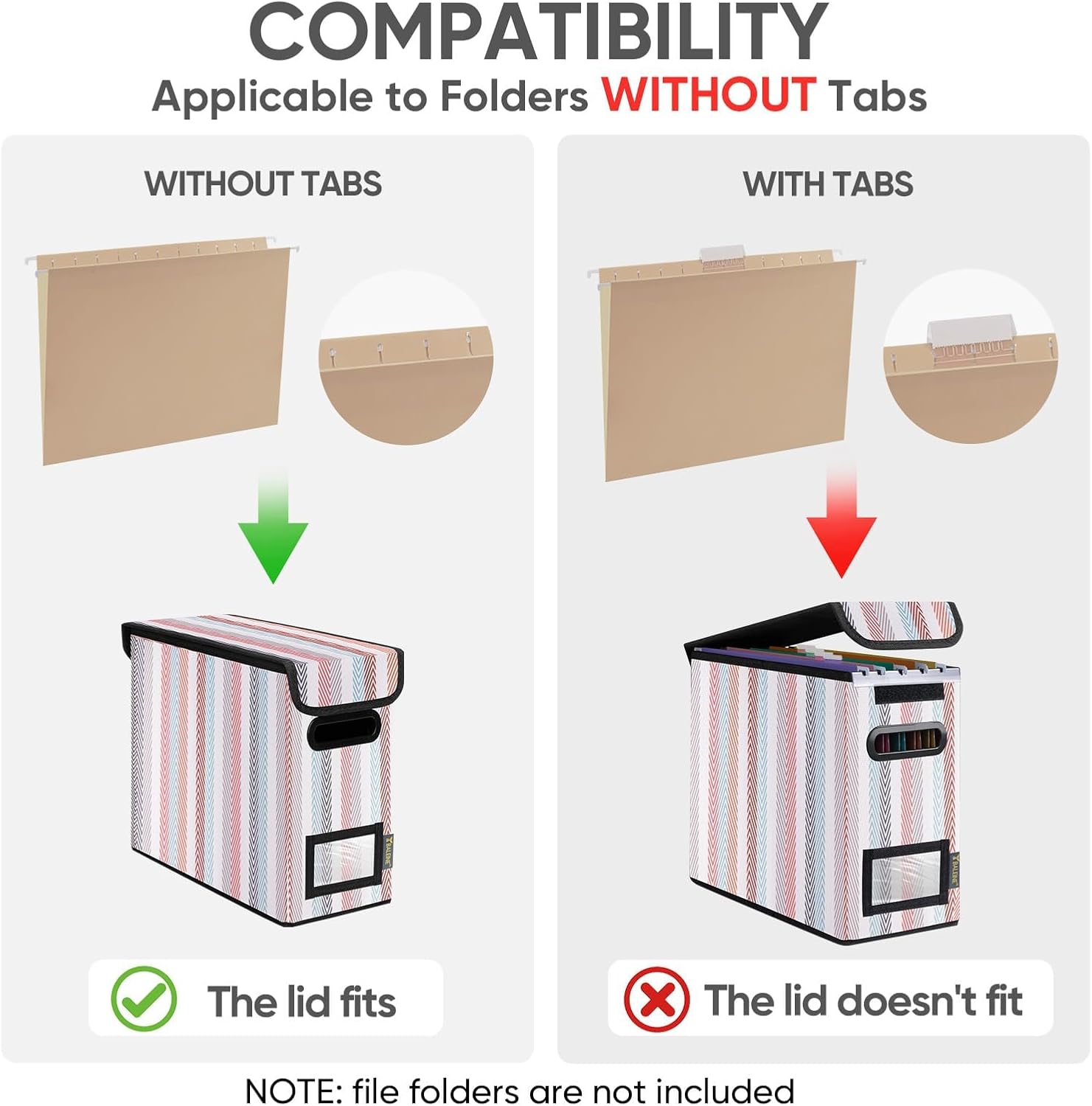 BALEINE File Organizer Box with Lid, Collapsible File Folder Organizer with Plastic Slide, Hanging File Folder Box for Office Document Storage (2 Pack, Color Stripe, S)