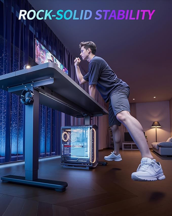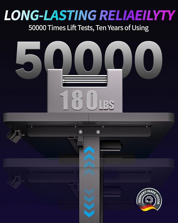 - Stable & Sturdy Design: This electric standing desk boasts a powerful motor that lifts at 0.8" per second and has been rigorously tested 20,000 times. This office desk can securely hold up to 132 lbs of weight. With safety as our priority, this rating reflects a conservative estimate - our real-world testing proves a 180lbs load capacity.