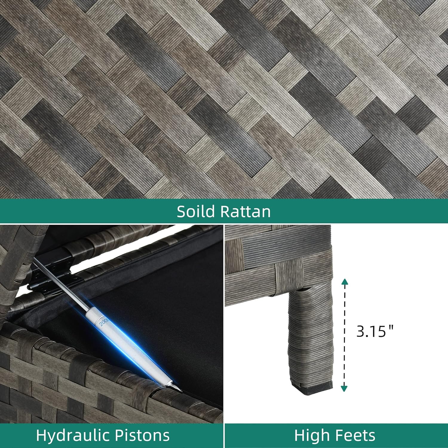 YITAHOME 230 Gallon Deck Box, XXL Wicker Outdoor Storage Box, All-Weather Storage Organizer for Patio Furniture, Outdoor Cushions, Pool Storage and Garden Tools (Grey)