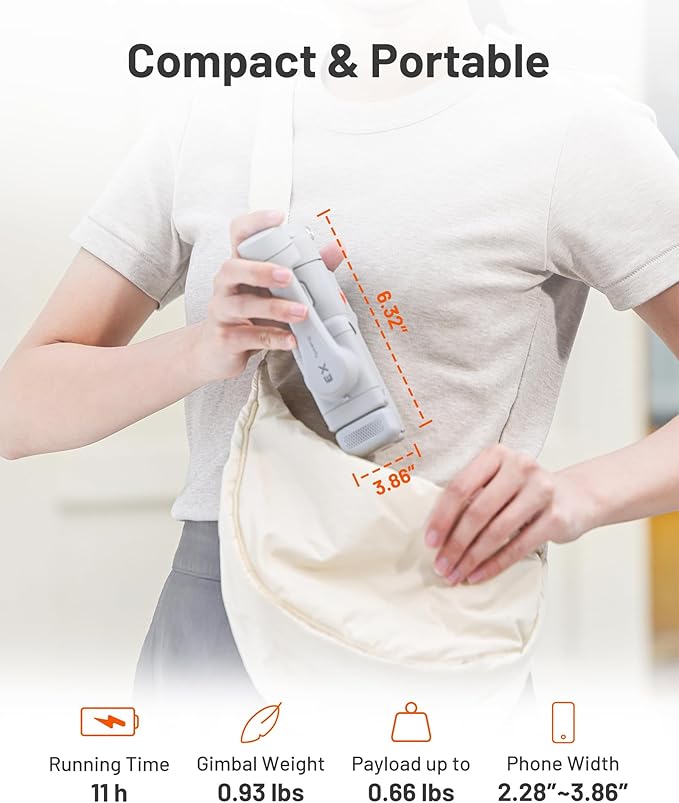 - [Ultra-Steady and Smooth] Equipped with the latest 2024 iSteady 8.0 anti-shake system, the iSteady X3 phone gimbal ensures shake-free footage even during fast movements, accurately seizing those fleeting instants; Extended roll arm ensures unobstructed views; Double-tap the power button to enter standby mode to save power or pick up the phone while in use