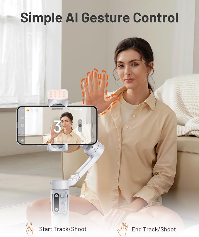 - [Intelligent Tracking] In the hohem Joy APP: Use simple gestures to control the tracking and shutter with iSteady X3 gimbal stabilizer; Freely select the tracking target to achieve smooth face and object tracking, whether in a fixed position or surround movement; No more need for a photographer, making your shooting smoother and easier