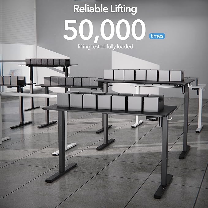 - Premium Quality & Stability: Crafted with an industrial-grade alloy steel frame and FSC-certified wood desktop, our standing desk provides exceptional stability, supporting up to 154 lbs, even after 50,000 tests.