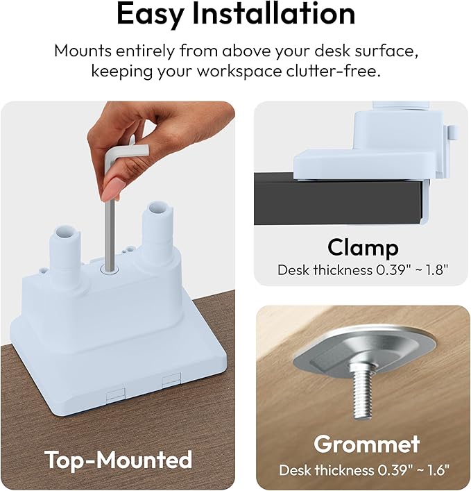 Pixio PS1D Wave Blue Dual Monitor Arm Stand Desk Mount - Fits up to 32 inches Monitors and up to 19.8lbs. VESA Compatibility and Integrated Cable Management