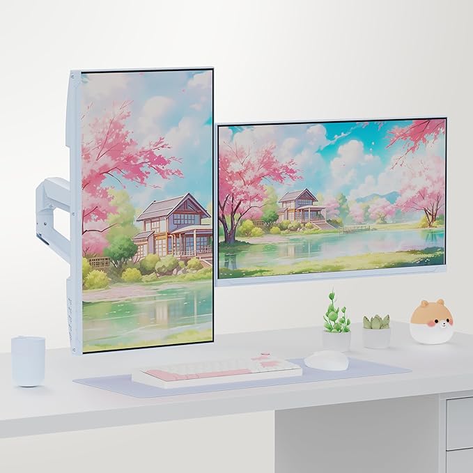 - Ergonomic Viewing Position - Offers smooth height adjustment, tilt, swivel, and pivot functions, allowing you to find the perfect viewing angles for both monitors.