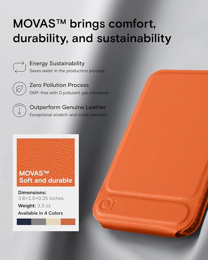 - 3-in-1 & Eco-friendly: This everyday carry features a phone tripod, phone stand and magsafe wallet with a simple fold to transform. It folds into an 8" phone tripod stand in a second. Crafted with the pioneering water-based MOVAS Vegan Leather, it's smooth to the touch while saving water from the manufacturing process.