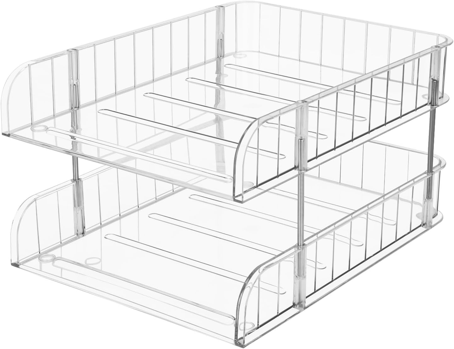 Stackable Letter Tray Papers Organizers, A4 Size Desk Organizer Tray for Letter Paper Stationery Desk Accessories, Plastic Black Paper Holder File Organizer for Office, School, Home (Clear)