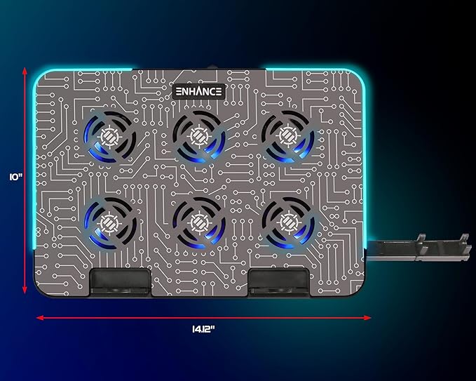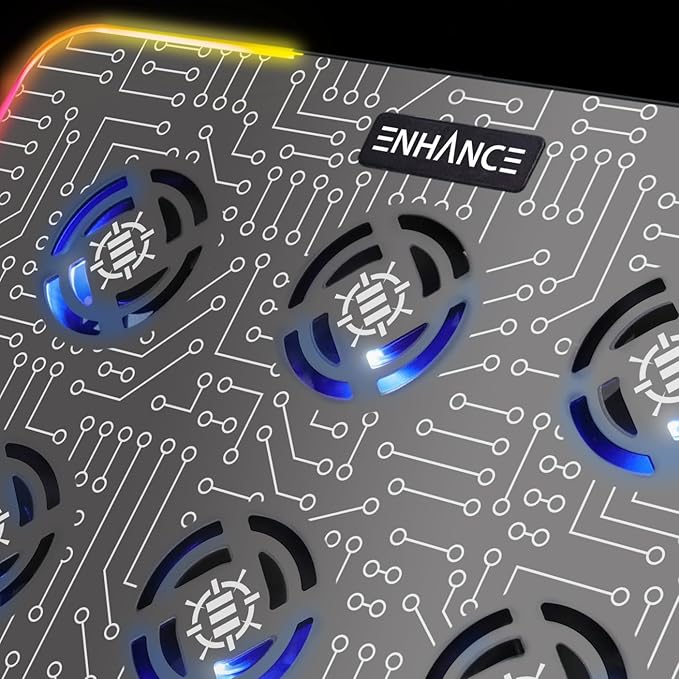 ENHANCE Gaming Voltaic 2 Laptop Cooling Stand - Laptop Cooling Pad with 6 Blue LED Fans, 7 Height Settings, RGB Lighting - Metal Top Cooler Pad with Phone Stand, 2 USB Ports for up to 17 inches