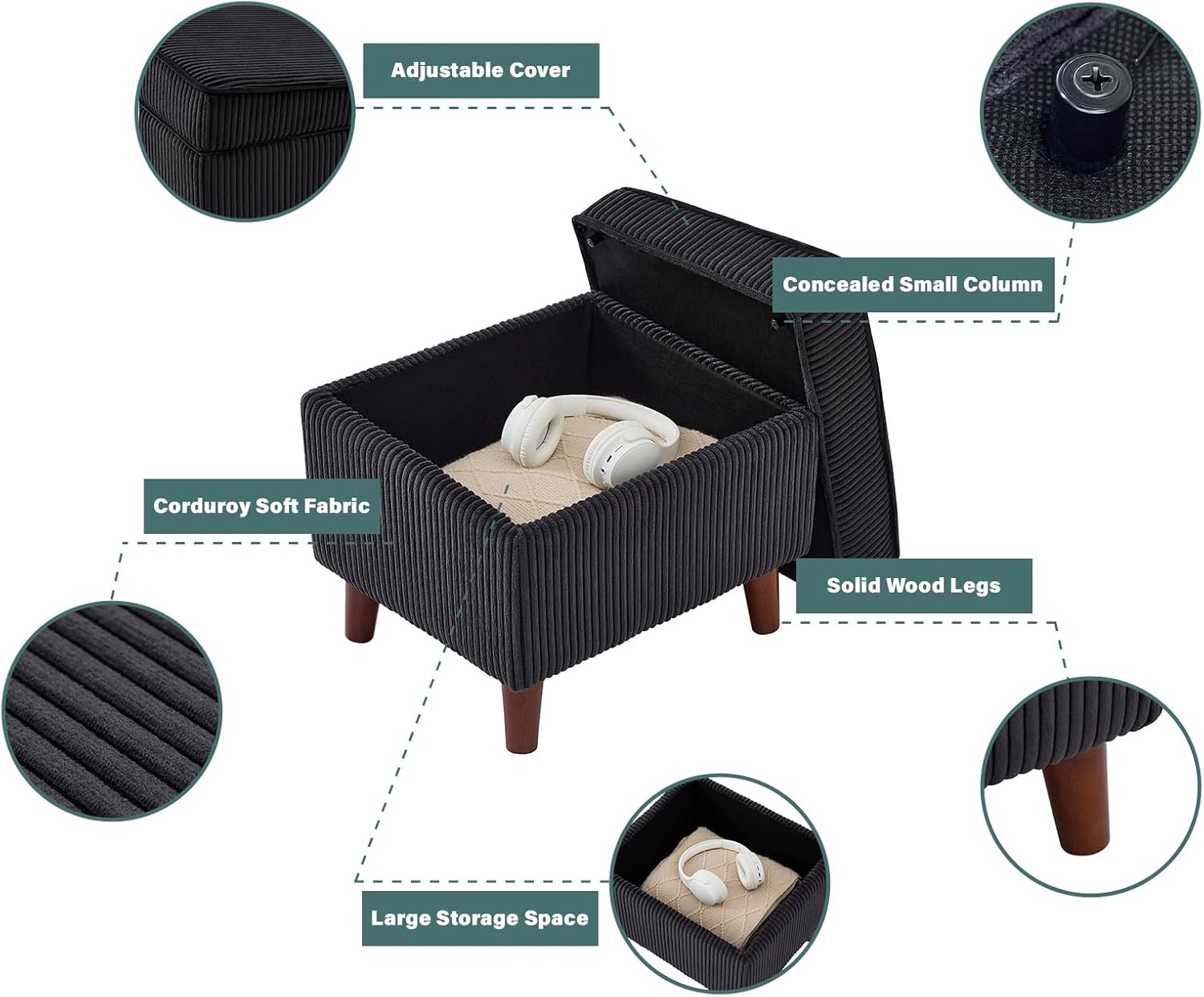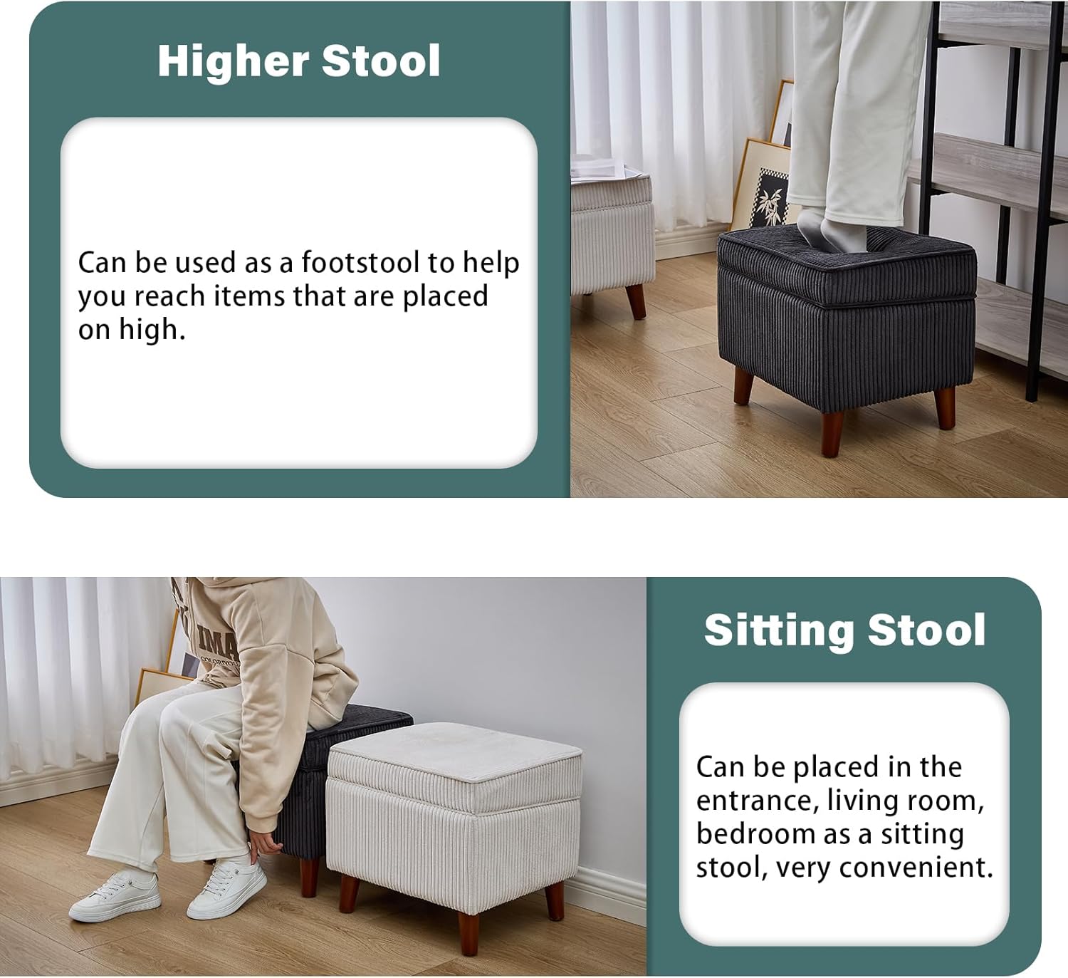 - 【Ottoman for Living Room】 Experience ultimate comfort with footstool’s soft corduroy fabric. Known for its durability and resistance to wear and tear, corduroy's plush texture provides exceptional comfort, making it a stylish and cozy addition to any room.