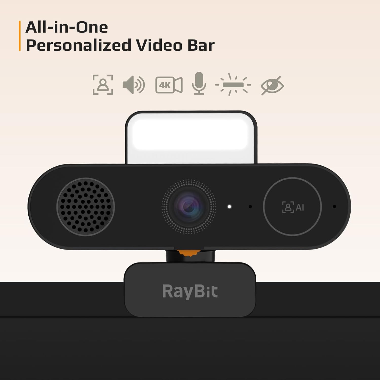 - All-in-One Video Bar: Declutter your workspace area by merging your camera, speaker, microphone, light, and privacy cover into one AI-powered camera for your computer monitor, and put the extra space to good use.
