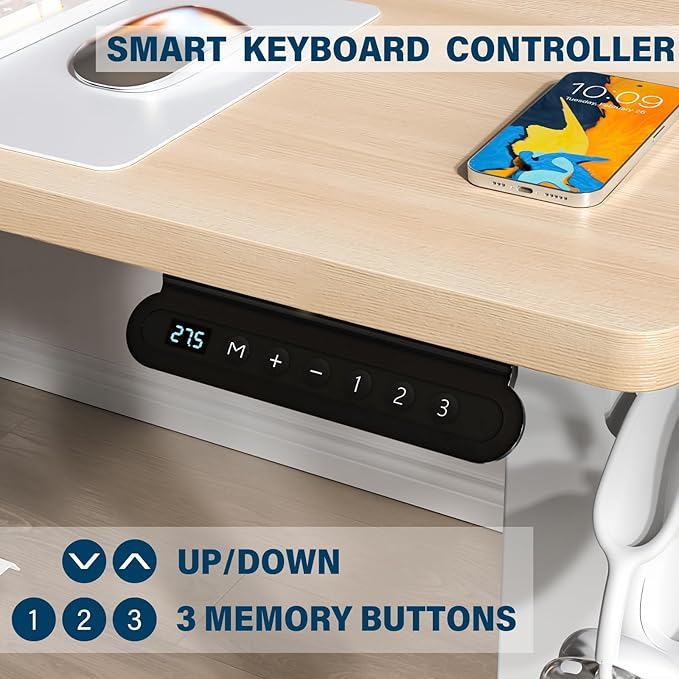 - Smooth Electric Lift Function: The desk features a powerful and quiet electric motor (<45dB). It lifts at 25mm/s, with a height adjustment range of 27.6" - 45.3", accommodating different heights for various needs. The adjustable desk comes with an easy-to-use control panel and memory function, allowing you to preset up to 3 frequently used heights for enhanced efficiency and comfort at work