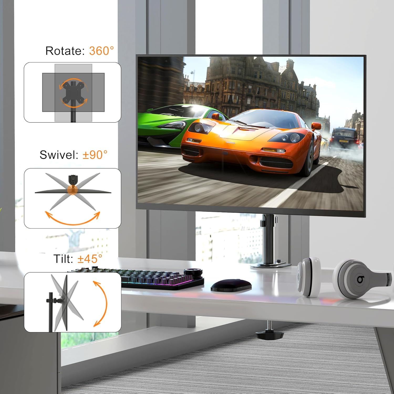 Pholiten Single Monitor Stand, Heavy Duty Adjustable Monitor Arm Desk Mount for 13-32Inch, Tilt, Swivel, Rotate, Support 22 lbs,Black