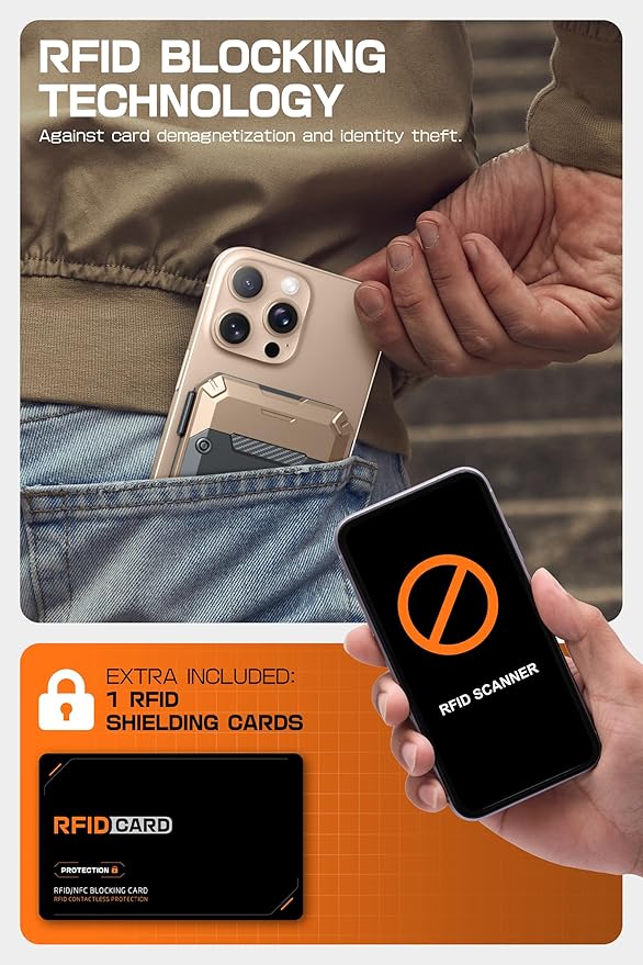 - [Security & Privacy]: Included 1 RFID Card with RFID blocking technology to prevent card demagnetization and identity theft, it can protect the information security of all cards in the wallet.