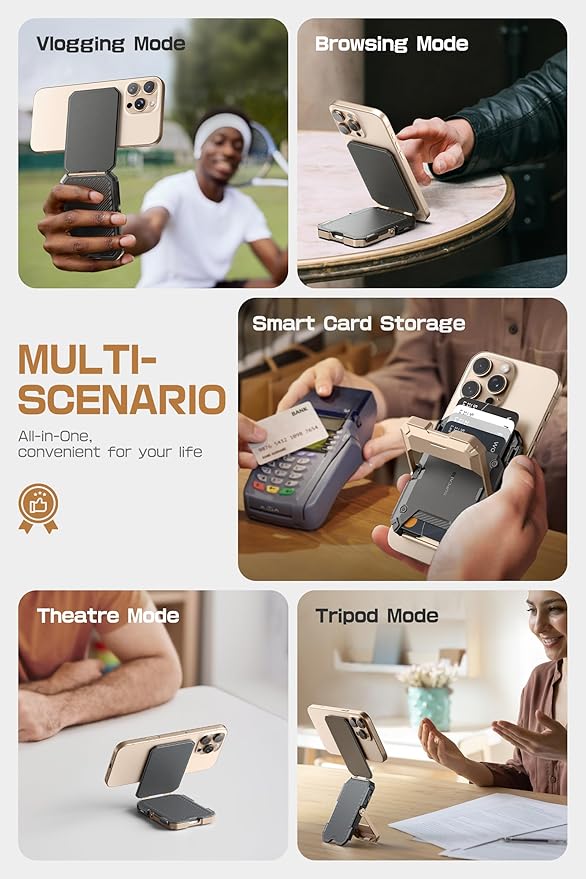 SUPCASE for MagSafe Wallet with Stand, Magnetic Wallet for Men, [Hold 5 Cards] [Adjustable Stand] [RFID Blocking] Phone Stand Credit Card Holder Tripod for iPhone 16/15/14/13/12 Series, Desert