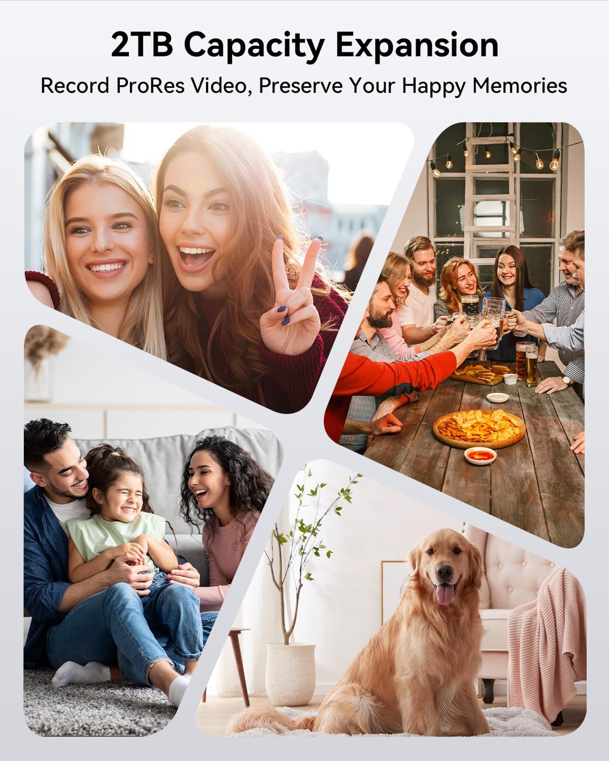 - 【Supports 4K ProRes Video Recording】Magnetic external solid state drive supports 4K ProRes video recording on iPhone 15/16 Pro/Max. It enables real-time recording and storage without needing a secondary transfer, allowing you to capture beautiful moments in your life at any time.