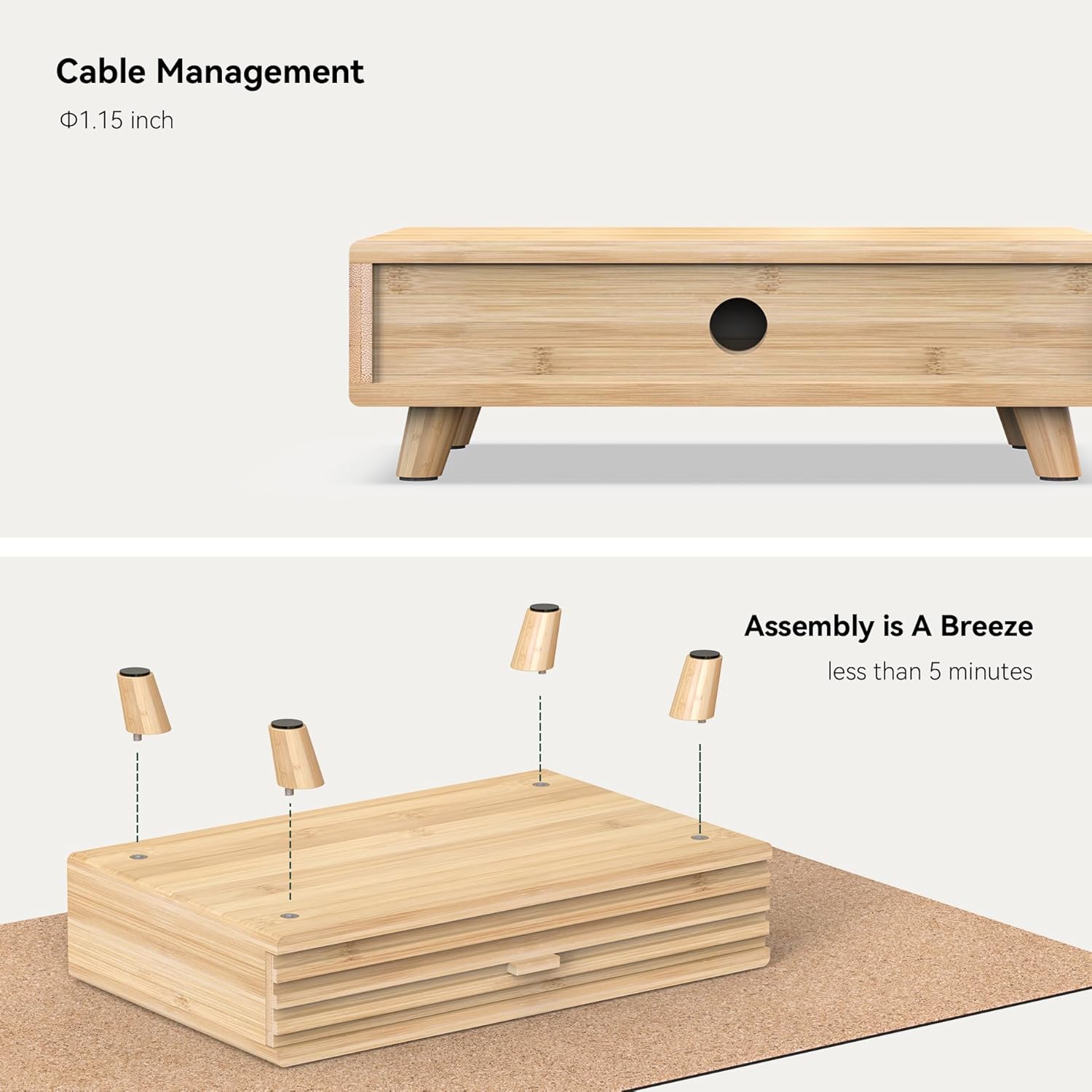 - 【Sleek Modern Aesthetic】 This monitor riser features a sleek, modern look with natural bamboo that complements any workspace.