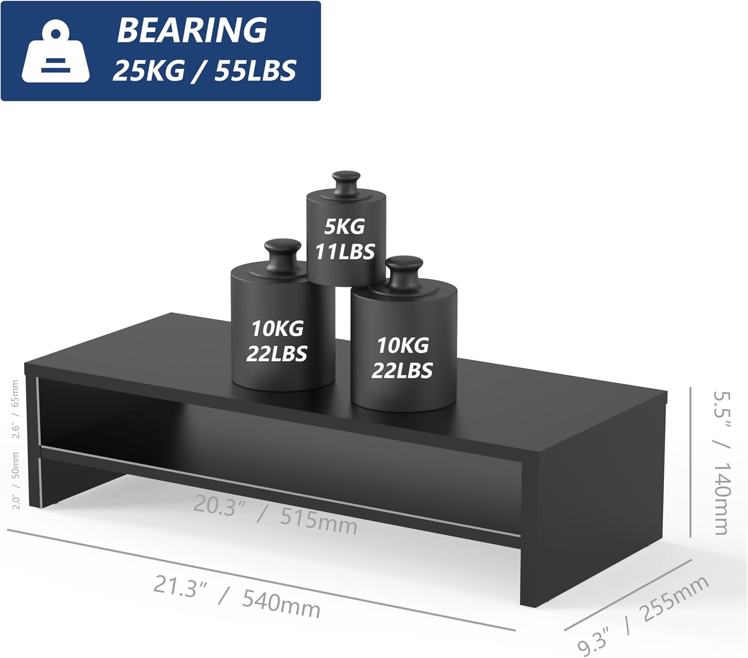 - 【Anti-slip Legs for Stable Stand】The laptop monitor stand is made of 15mm MDF for a beautiful appearance and easy to keep clean. Rubber skids on the bottom of the legs prevent the stand from sliding freely. Tough enough for printers, laptop, desktop or any other type of heavy equipment.