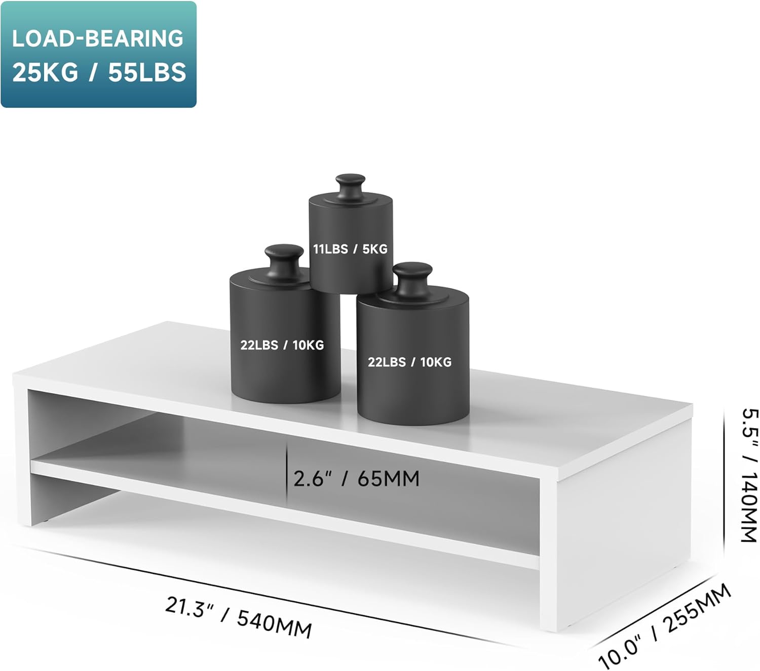 FITUEYES Monitor Stand - 2 Tier Computer Monitor Riser with 21.3 Inch Shelf, Wood Desktop Stand for Laptop Computer Screen, Desk Organization, Office Supplies
