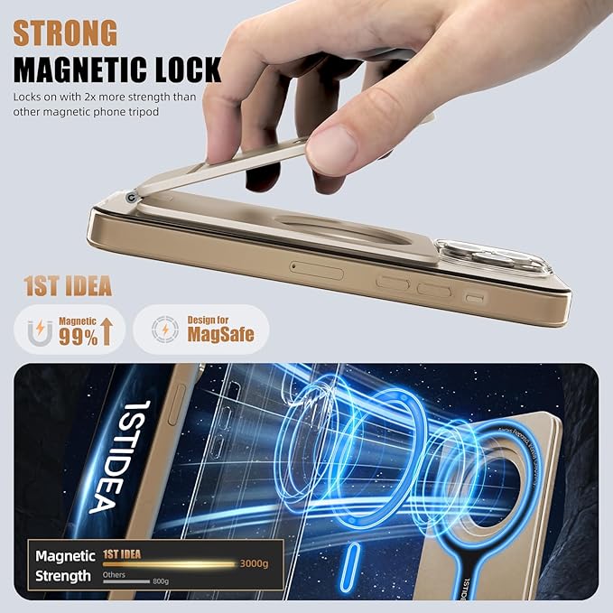- Compatibility: 1ST IDEA phone tripod stand compatible with iPhone 16 Pro Max, iPhone16 Pro, iPhone 16 Plus, iPhone 16, iPhone 15 Pro Max, iPhone15 Pro, iPhone 15 Plus, iPhone 15, iPhone 14 Pro Max, iPhone14 Pro, iPhone 14 Plus, iPhone 14, iPhone 13 Pro Max, iPhone 13 Pro, iPhone 13, iPhone 13 Mini, iPhone 12 Pro Max, iPhone 12 Pro, iPhone 12, iPhone 12 Mini, and compatible with MagSafe cases. Tripod iphone for non-MagSafe phones or cases with an included Metal Ring Inside the package