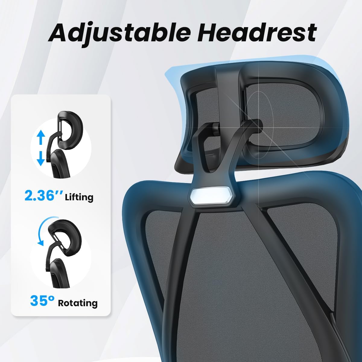 Farini Ergonomic Office Chair with Footrest, Mesh Office Desk Chair with Headrest, High Back Computer Chair with Adjustable Lumbar Support.for Home Office Study Room Bedroom (Black)