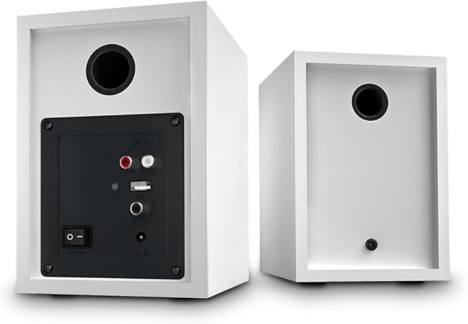 - Multiple Input Options & Versatile Audio Solution for Enhanced Entertainment: Ideal for gaming, music streaming, and computer audio enhancement. In addition to Bluetooth, the speakers include multiple input options such as RCA and AUX connections, providing versatility for different devices, such as smartphones, turntables, desktop computers, laptop, televisions, streaming devices, game consoles, media players (CD players or digital audio players), subwoofers, audio receivers, and more. They are easy to set up and connected to a small tablet or laptop, ready to play lullabies, storytime audiobooks, or upbeat tunes for playtime.