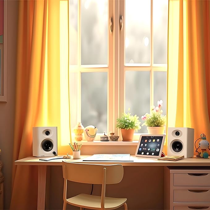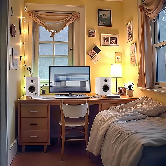 - Compact Yet Powerful & Dorm-Friendly Volume: Crank it up for parties or keep it low for late-night studying. The space-saving powered bookshelf speakers are perfect for easy placement in various environments without taking up much space, making them suitable for desktop setups and bedroom audio systems, such as dorm room, home offices or console gaming setup. They deliver big sound in a small package — perfect for student life!