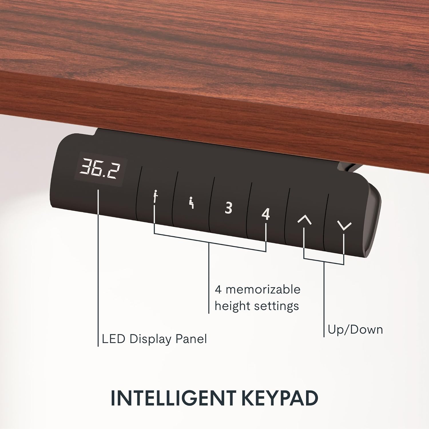 - ?�PROGRAMMABLE CONTROLLER??Easily set your preferred desk heights using the convenient control panel. Program up to four different heights into the memory buttons, allowing you to switch between sitting and standing positions effortlessly.