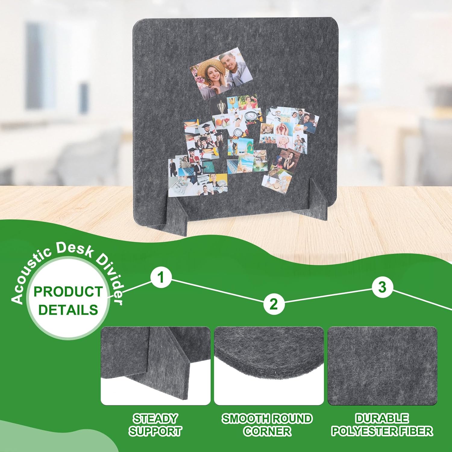 - Advantage: Excellent Material: Made of polyester fiber, these acoustic desk dividers are durable and reliable, and they are not easy to fade, break, or deform. It can reduce noise, and protect your privacy, effectively increasing your productivity and concentration; Portable Size: The portable and lightweight desk divider can be easily moved, and stored anywhere when not applied, saving you space. Stand Firmly: The support foot can ensure that the desk divider stands steadily without falling.