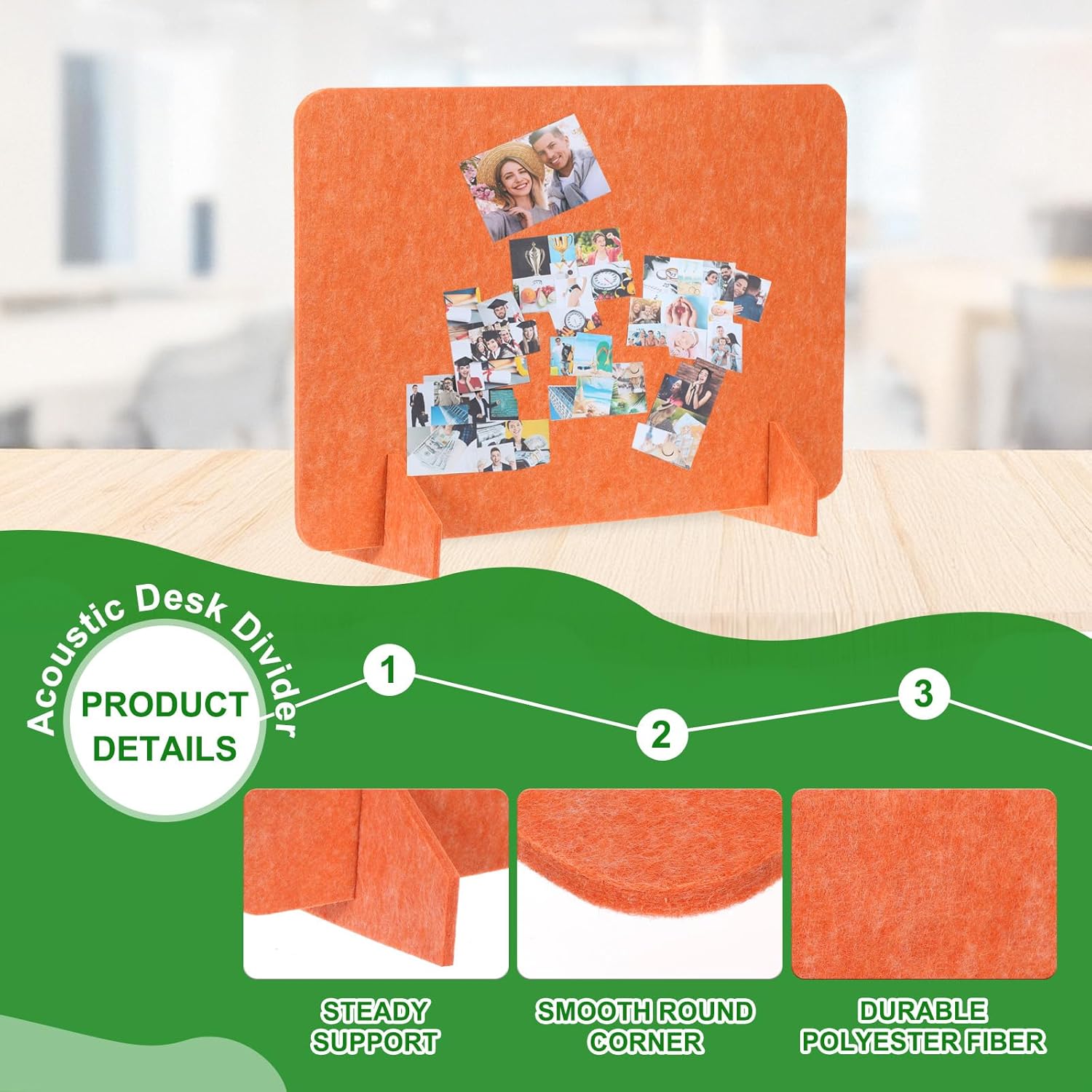 - Specification: Material: Polyester Fiber; Size: 600 x 400 mm/23.6 x 15.7 Inch(L*W); Thickness: 9mm/0.4 Inch; Color: Orange; Packing List: 2 Sets x Desk Dividers(Each Set includes 1 Pcs x Divider and 2 Pcs x support feet)