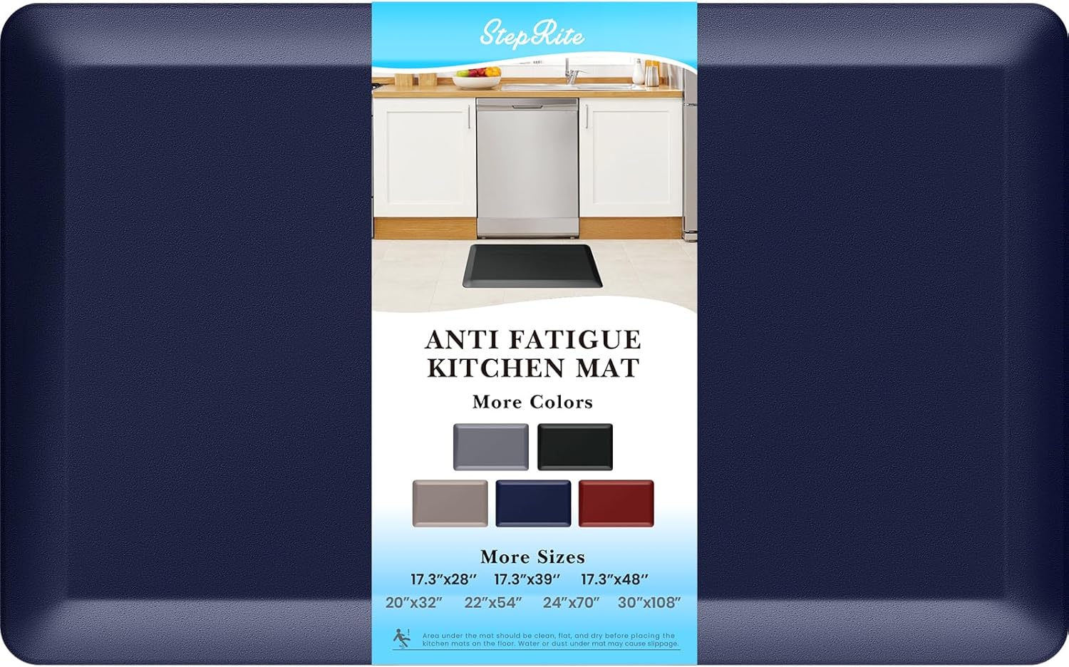 4/5 Inch Thick Kitchen Mats for Floor, StepRite Kitchen Rug for Standing Desk, Non-Slip, Thicker, Stain Resistant, Waterproof, Comfort Anti Fatigue Floor Mat for Home, Kitchen, Office - Blue,32*20''