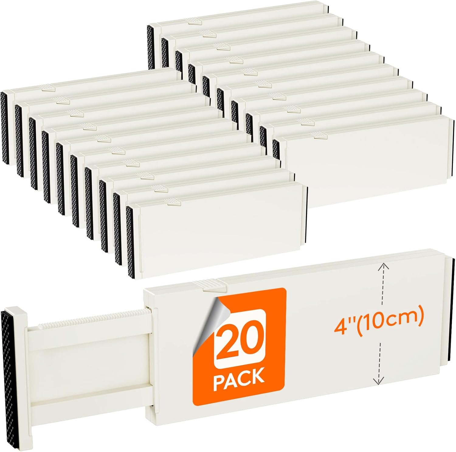 Lifewit 20 Pack Drawer Dividers 4" High, 11-17" Adjustable Dresser Drawer Organizers for Clothes, Expandable Dresser Separators in Bedroom/Bathroom/Kitchen/Vanity/Office Organization and Storage,Beige