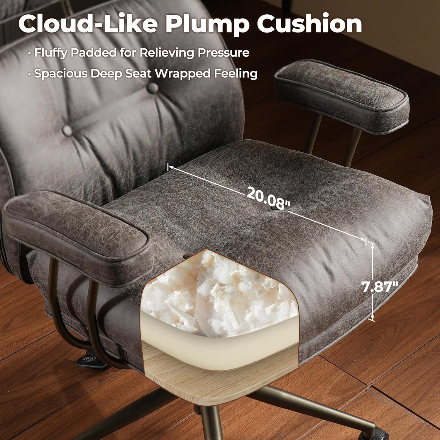 ovios Home Office Chair, Mid-Century Modern Faux PU Leather Chairs with Lumbar Support Comfy Thick Cushion, High Back Ergonomic Swivel Rolling Executive Armchair (Dark Grey, Suede Leather)