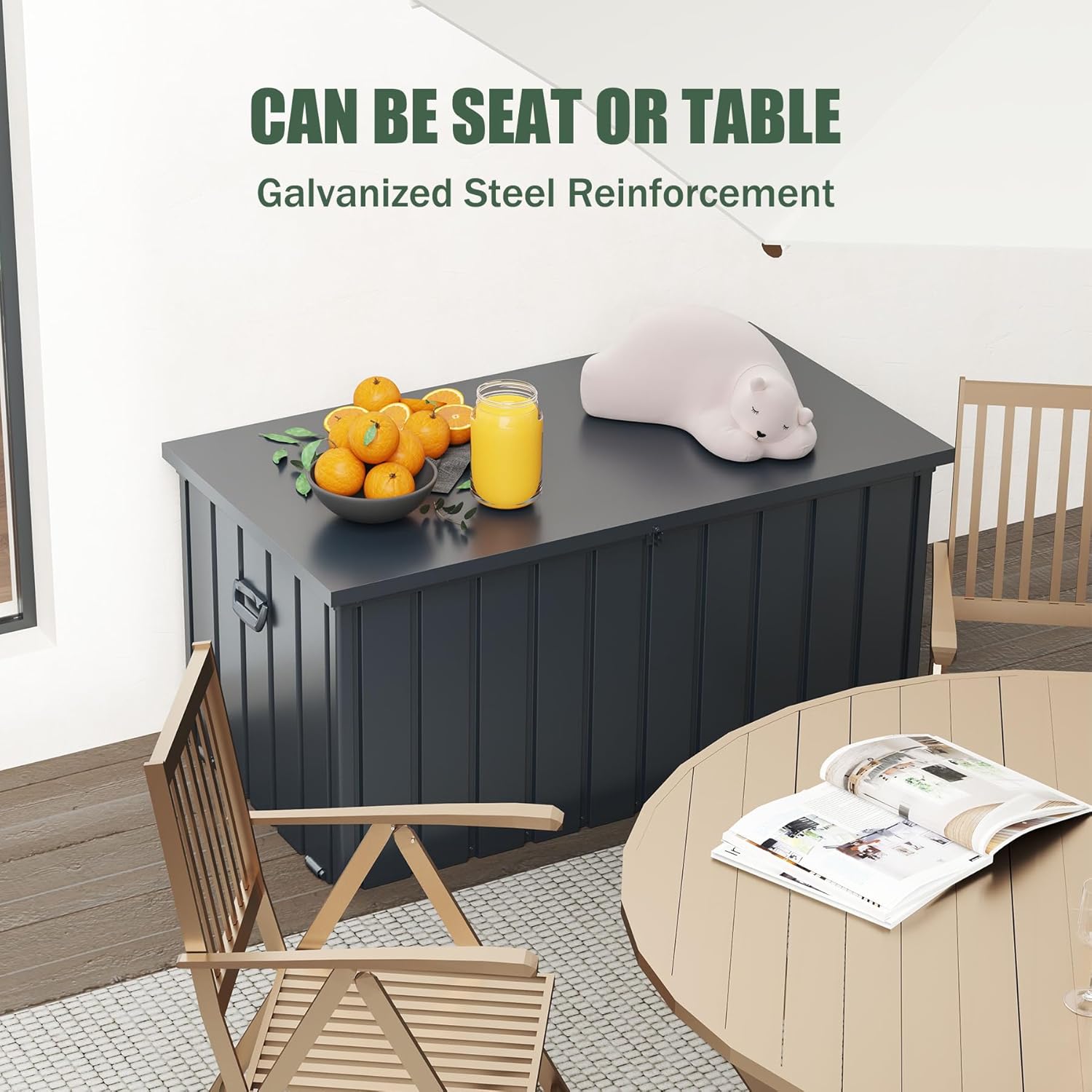 Domi Deck Box 200 Gallon, Waterproof Lockable Steel Outdoor Storage Container for Outside Cushions, Garden Tools and Pools Equipment(Gray)
