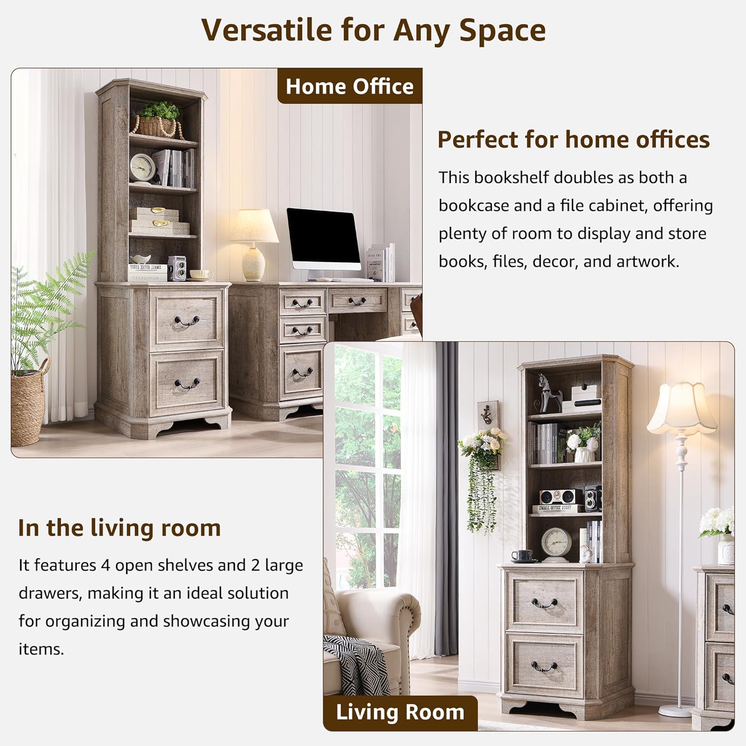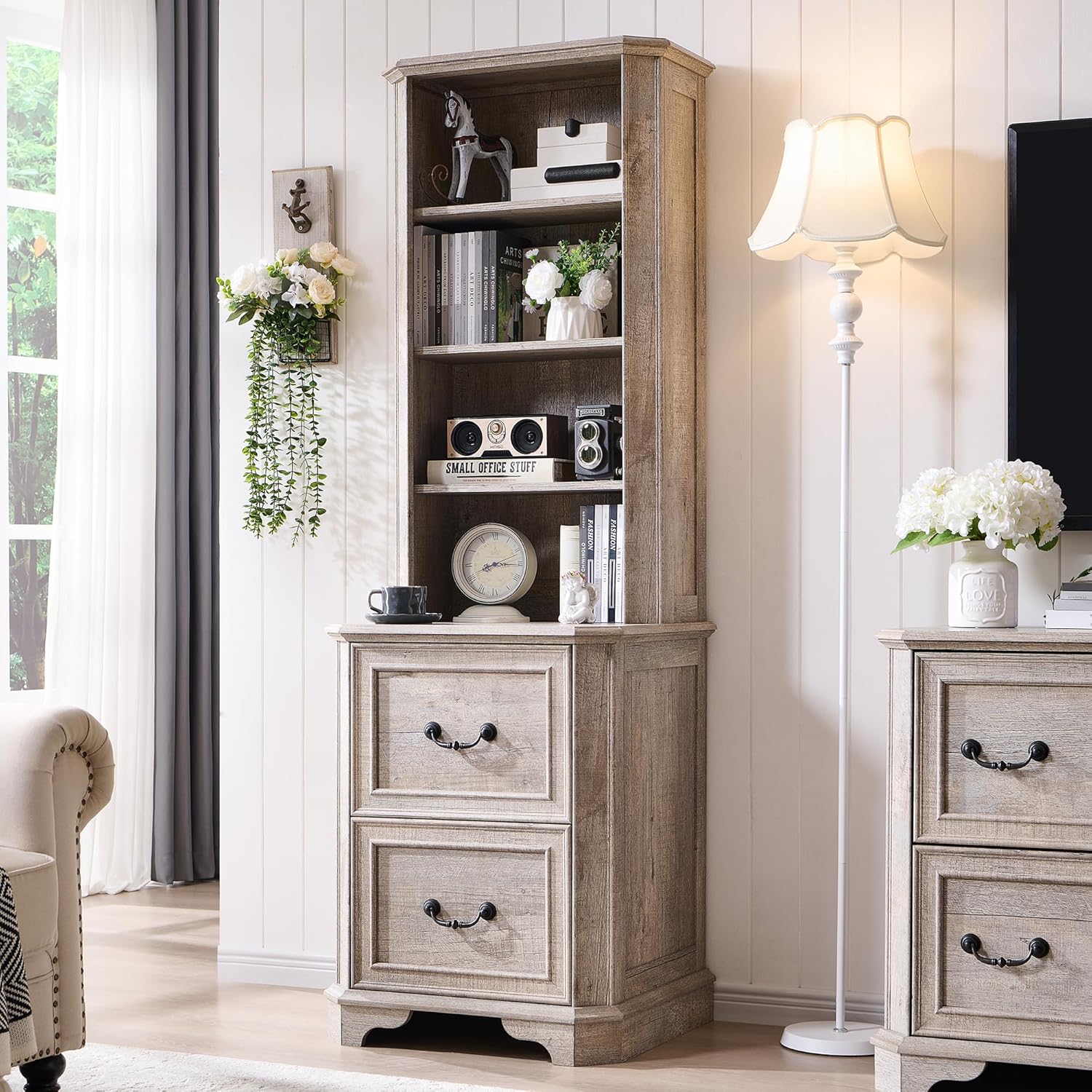 - Multipurpose Storage for Any Room: More than just a book shelf with storage, this versatile unit functions as a file cabinet, display case, or storage organizer. Use it in an office for documents, in a living room for décor, in a kitchen for cookware, or even in a classroom or library as a dedicated book corner. The timeless farmhouse style seamlessly complements any setting