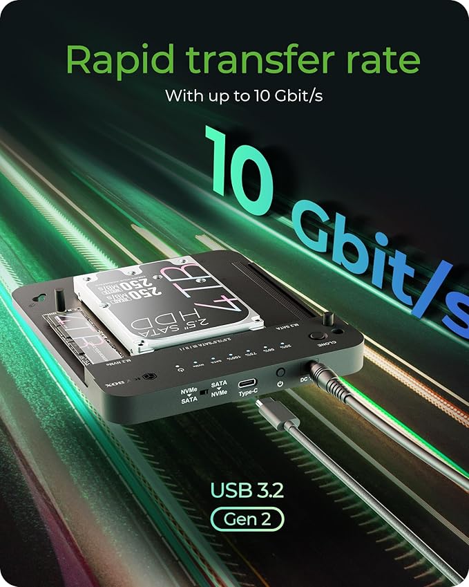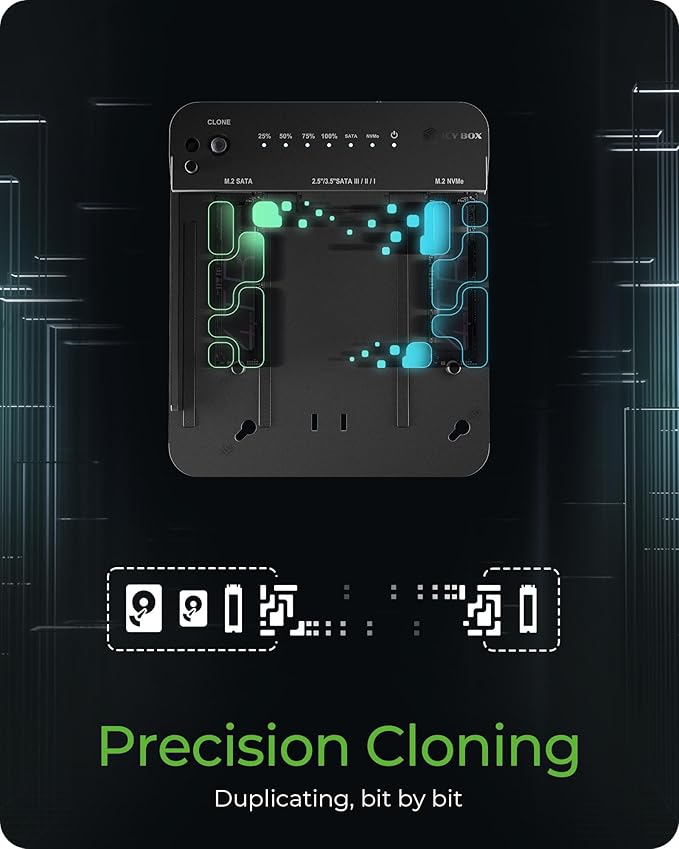 - [Stand-Alone Cloning Without Software]: Easily create exact, bit-by-bit copies of your drives without needing a computer or any cloning software. With the simple press of a button, duplicate your system drive or back up important data reliably and quickly. This standalone function saves time and removes technical barriers.
