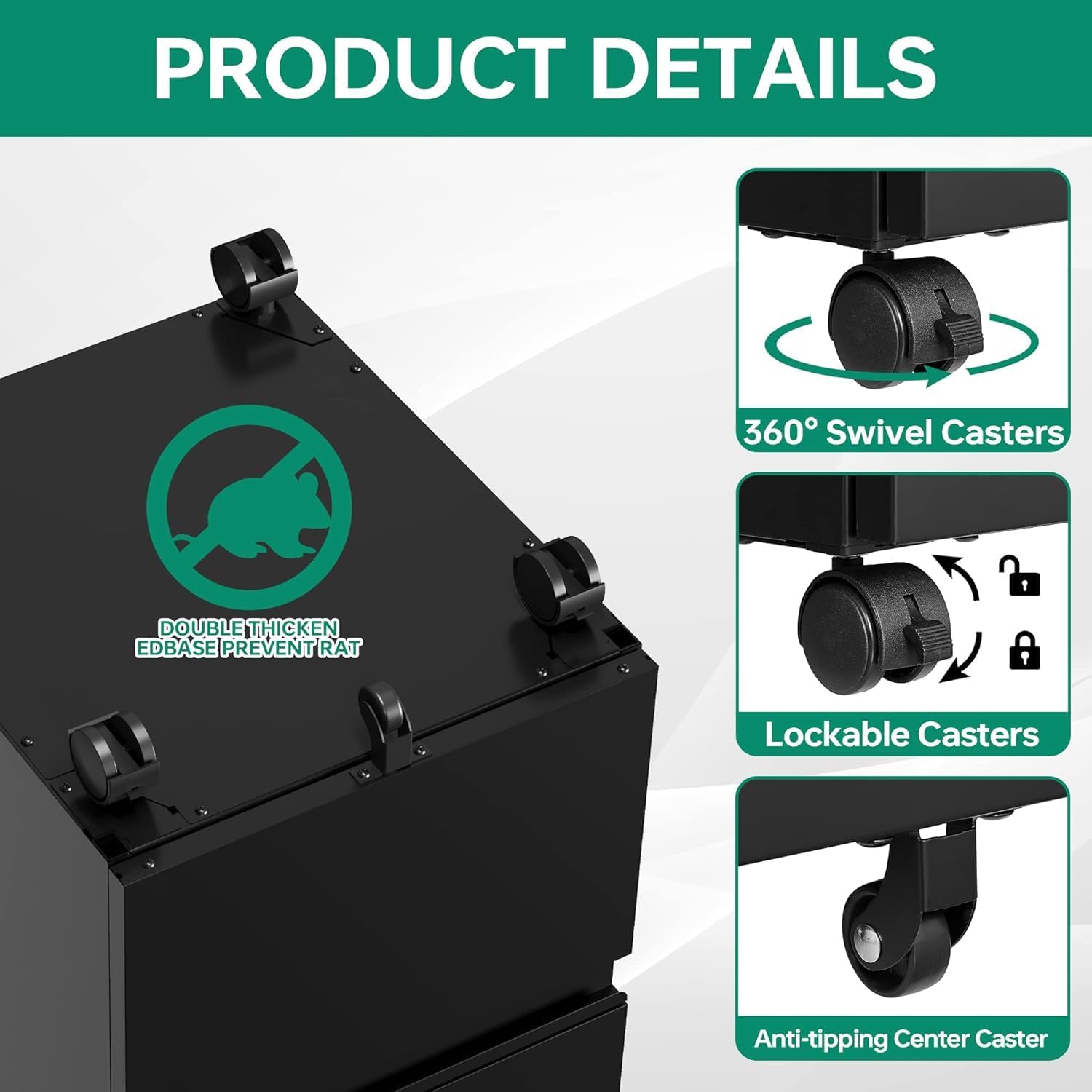 - 〖Detail Design〗All drawers interlocking mechanism design,only one drawer can be opened at a time, it will prevent tipping;High-quality ball slides make it easier and quieter to use, lockable wheels + 1 universal wheel to prevent tipping.